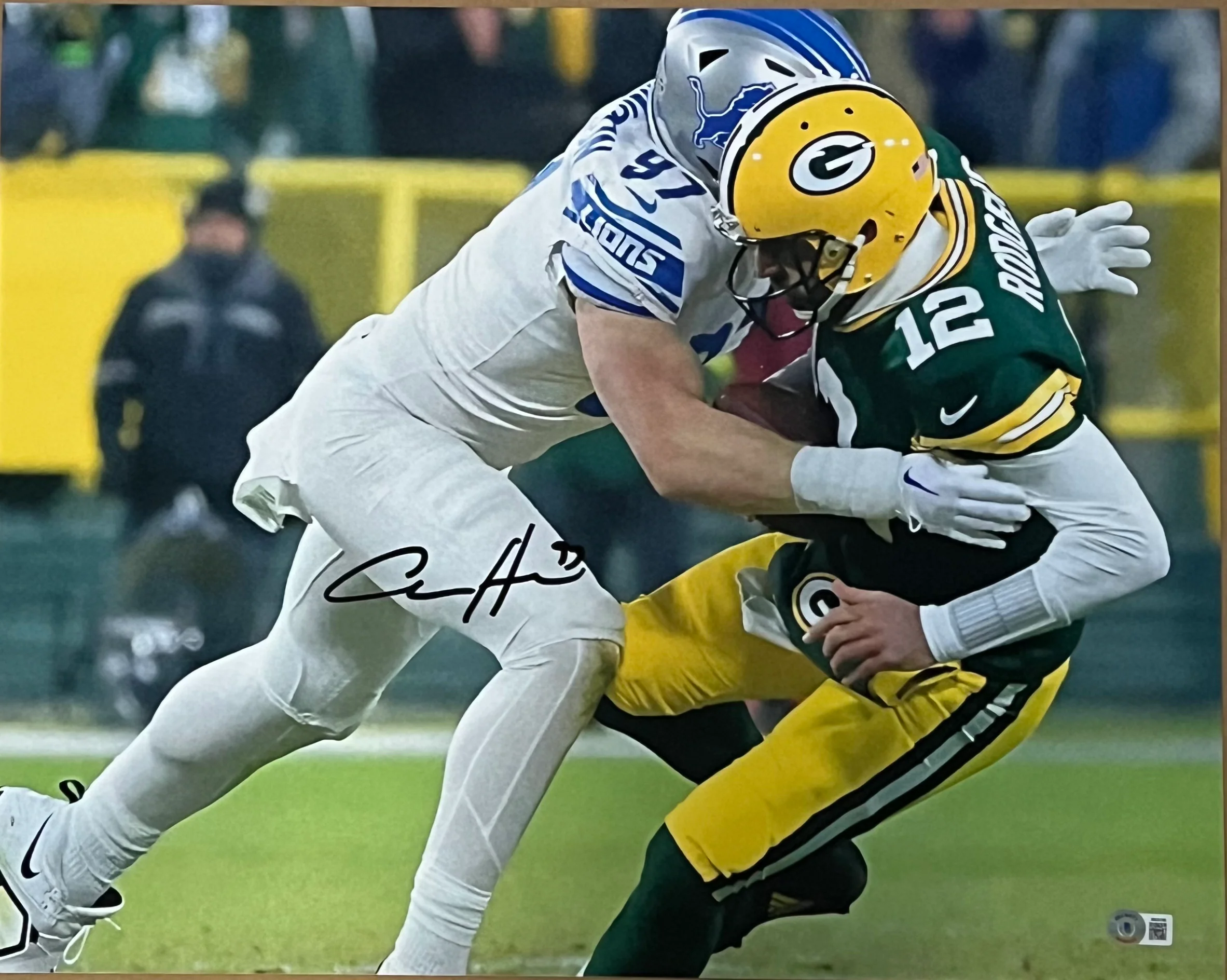 Aidan Hutchinson Autographed Detroit Lions, 16x20 Photo With Aaron Rodgers Beckett