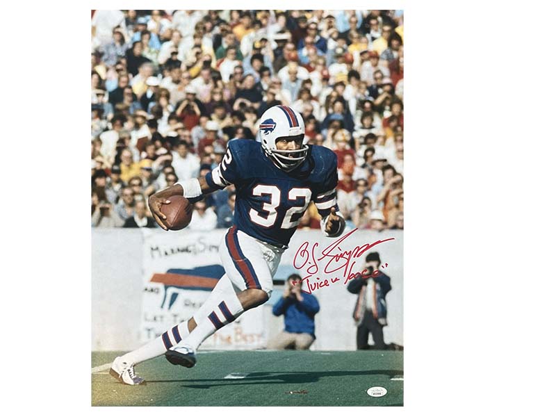 O.J. Simpson Autographed Buffalo Bills 16x20 Photo JSA Juice Is Loose ?Insc